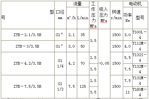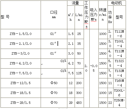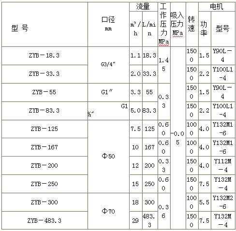 ZYB型系列渣油泵 性能參數(shù)表 :